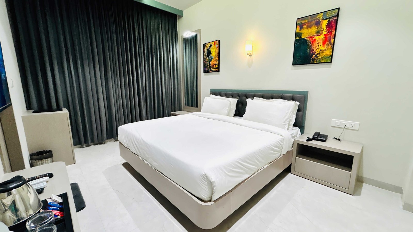 Double Bed AC Room – Perfect for couples or solo travelers, this room offers a cozy double bed, air-conditioning, free Wi-Fi, and all essential comforts for a peaceful stay.