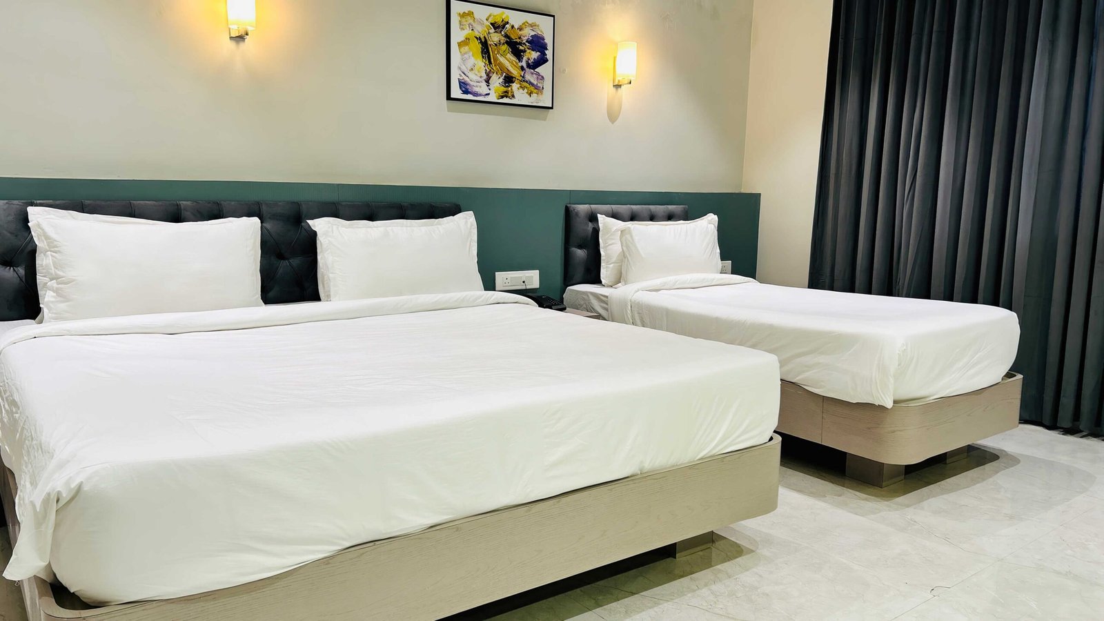 Triple Bed AC Room – Perfect for couples or families, this room offers a cozy double bed & 1 single bed, air-conditioning, free Wi-Fi, and all essential comforts for a peaceful stay.